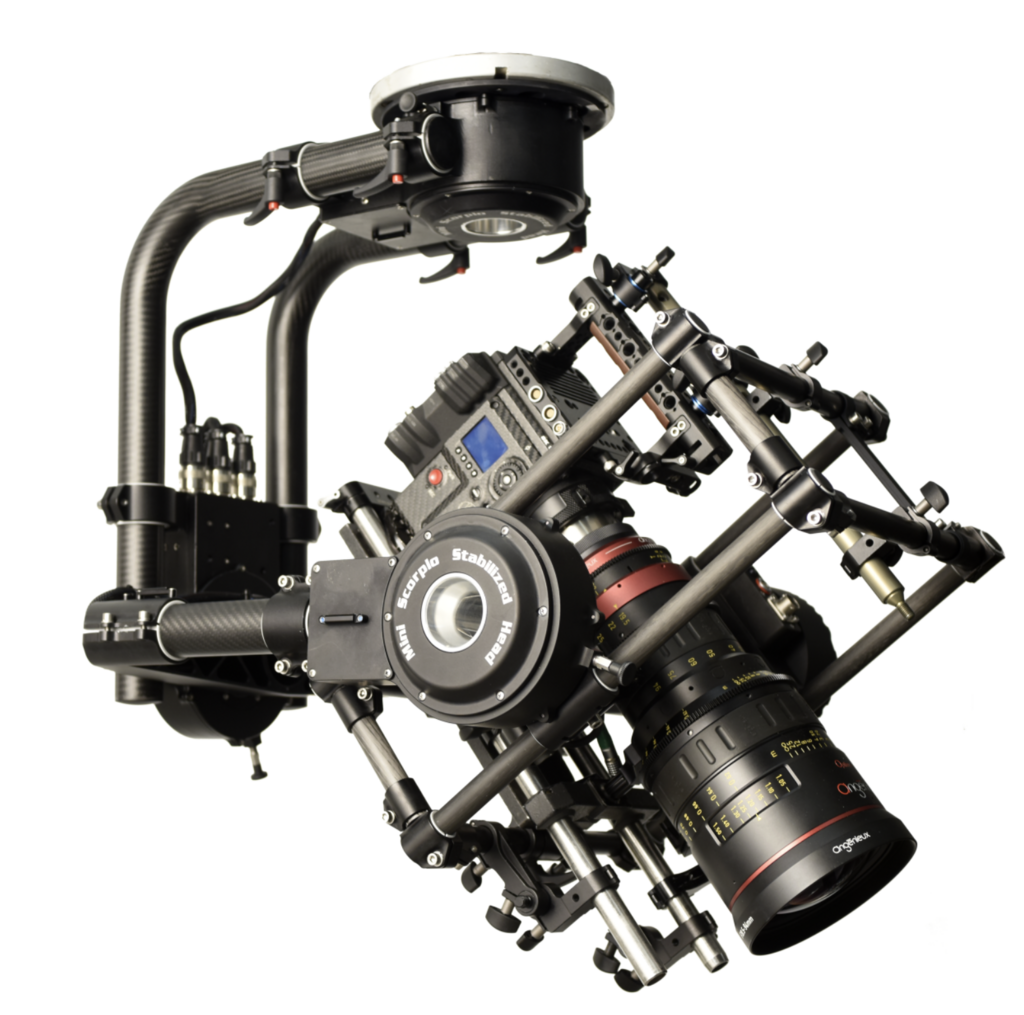 The Mini Scorpio Stabilized Head V by ServiceVision is a new level in the small stabilized heads. Following the principles of the Scorpio Stabilized V, the design of the new gyros, new mechanics and new software allows to be small and light with high capacity and high level of stabilization. Weighing in at just 35 lbs., the Mini V can carry a 45 lb. payload rotating 360º on both Pan and Roll at 180º per second. Focal length stabilization up to 200 mm! Head comes with operator wheels and 900 MHz wireless. Package and optional equipment on the Rate Sheet.